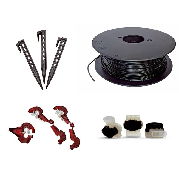 | Accessoire(s) inclu(s) | 2 X200 M de fil périmétrique Ø2;3mm; 375 piquets de fixation; 2 fiches de serrage; 7 connecteurs de fils |